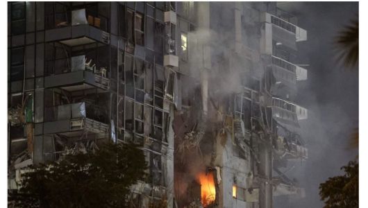 이란 공습에 파괴된 이스라엘 텔라이브의 건물. AFP 연합뉴스. |