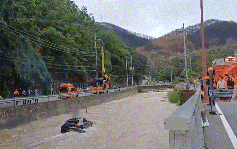 14일 뉴스1에 따르면 이날 오전 10시 13분쯤 경북 청송읍 부곡리 괘천에서 떠내려가던 차량이 중간에 멈춘 채 2명이 앉아있다는 신고가 접수됐다.