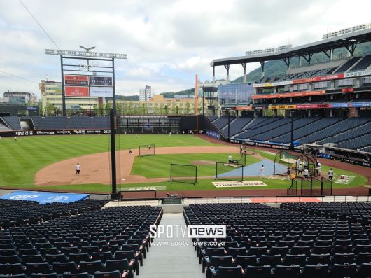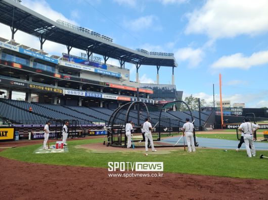 한화생명볼파크에 깔려 있던 대형 방수포는 사라졌다. 선수들은 경기장에서 내외야 수비 훈련과 배팅 연습을 했다.