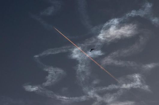이스라엘 방공체계 아이언 돔이 14일 서안지구 도시 내뷸러스 상공에서 발사체를 요격하고 있다.내뷸러스=EPA 연합뉴스 |