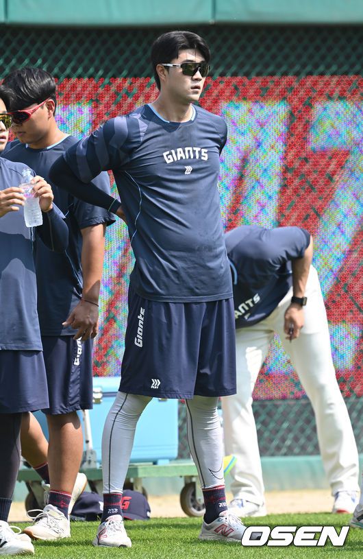 [OSEN=인천, 김성락 기자] 14일 인천 SSG랜더스필드에서 ‘2025 신한은행 SOL Bank KBO리그’ SSG 랜더스와 롯데 자이언츠의 경기가 열렸다. 이날 SSG는 김광현, 롯데는 감보아를 선발로 내세웠다. 경기 시작에 앞서 롯데 윤성빈이 훈련을 하고 있다. 2025.06.14 / ksl0919@osen.co.kr