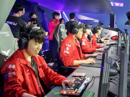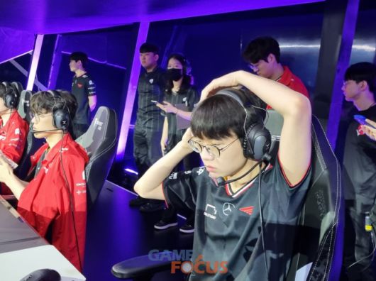 T1 선수들이 KT 롤스터와의 '로드 투 MSI' 4라운드 경기를 앞두고 장비 체크를 진행하고 있다. 한편 14일 진행되는 로드 투 MSI 4라운드 승리 팀은 15일 한화생명e스포츠와 MSI 2시드 자리를 두고 경쟁할 예정이다. <<저작권자 ⓒ 게임포커스, 무단전재 및 재배포 금지>