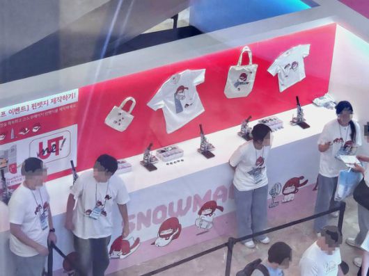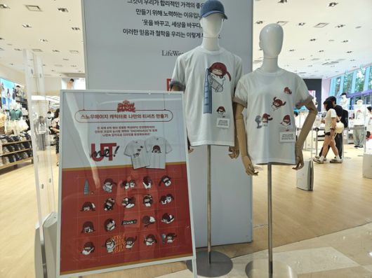 팝업 행사 현장 근처의 유니클로 롯데월드몰점에서도 스노우메이지 상품을 만나볼 수 있다. 해당 매장에서는 유저가 직접 굿즈를 제작하는 커스텀 서비스 'UTme!'를 제공해 준다.