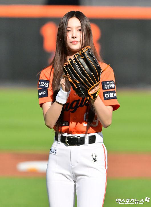 (엑스포츠뉴스 대전, 김한준 기자) 14일 오후 대전 한화생명 볼파크에서 열린 '2025 신한 SOL Bank KBO리그' LG 트윈스와 한화 이글스의 경기, 경기 전 아일릿 윤아가 시구에 임하고 있다.김한준 기자 kowel@xportsnews.com