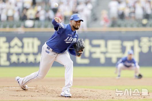 [서울=뉴시스] 최동준 기자 = 1일 서울 송파구 잠실야구장에서 열린 2025 KBO리그 삼성 라이온즈와 LG 트윈스의 경기, 삼성 선발 레예스가 역투하고 있다. 2025.06.01. photocdj@newsis.com |