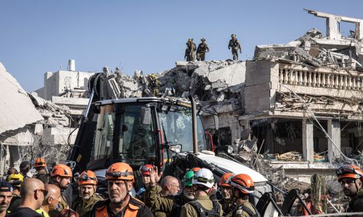 14일(현지시각) 이란에서 발사된 미사일에 폭격을 당한 이스라엘 텔아비브 남쪽 현장에서 이스라엘 긴급구조대가 구조 활동을 벌이고 있다. AFP 연합뉴스 |