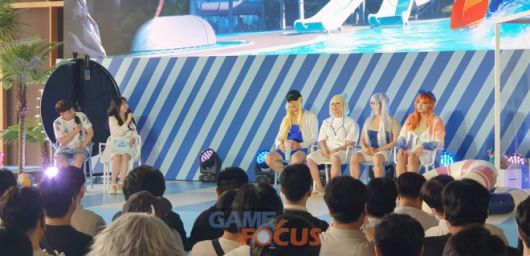 라이브 방송 현장은 여름을 맞아 마련된 이벤트팩 '스플래시 퀸' 세계를 현실에 구현한 듯한, 워터밤 콘셉트로 꾸려졌다.