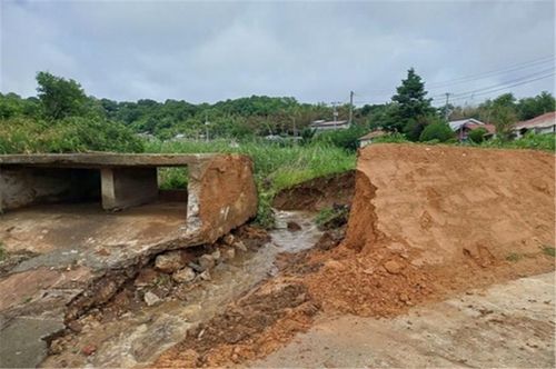 전날부터 이날까지 이틀간 군산에 114.4㎜의 폭우가 내리면서 이날 오전 군산시 개정면에 위치한 충량저수지의 제방 일부가 무너져 내렸다.
