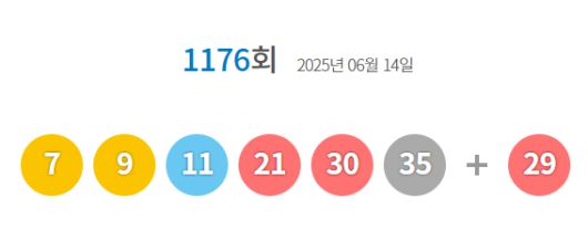 로또복권 운영사 동행복권은 제1176회 로또복권 추첨에서 ‘7, 9, 11, 21, 30, 35’가 1등 당첨번호로 뽑혔다고 14일 밝혔다. 2등 보너스 번호는 ‘29’다.