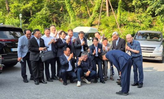 정 의원은 "친구 대통령이 잊지 않고 소년공 친구들을 초대했다"며 "이재명 (당시) 소년공은 초등학교 졸업후 쭈욱 공장에 다녔는데 손에 영어사전을 들고 다니며 열심히 공부했다고 했다"고 전했다.