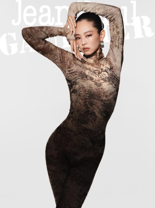 공개된 사진 속 제니는 고티에 특유의 아트적 요소가 가미된 보디슈트와 드레스를 완벽하게 소화하며 압도적인 존재감을 드러냈다.