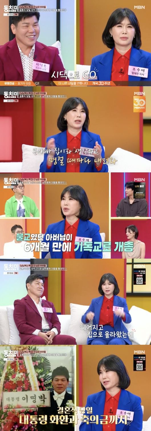 조수아는 “(아버지가) 우리 아들이랑 결혼 안 해도 좋으니 큰아빠 집이라 생각하고 명절 때마다 내려오라고 하시더라. 불교였던 아버님이 (나를 위해) 6개월 만에 기독교로 개종했다. 그래서 결혼을 했다”라고 설명했다.