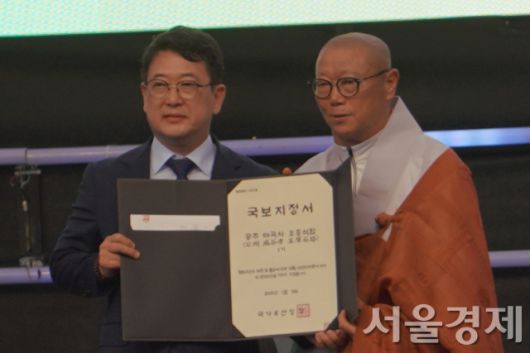 최응천 국가유산청 청장은 14일 오후 충청남도 공주시 마곡사에서 진행된 ‘공주 마곡사 오층석탑’의 국보 승격 지정 기념행사에서 이렇게 말했다. 이날 최 청장은 마곡사 원경 주지스님에게 국보 지정서를 직접 전달했다.