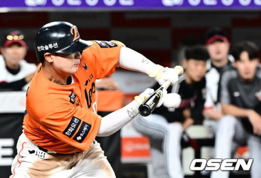 연장 11회말 무사 1루에서 한화 이진영이 보내기 번트를 시도하고 있다. 타구가 투수 앞으로 향하며 병살. 2025.06.14 /jpnews@osen.co.kr