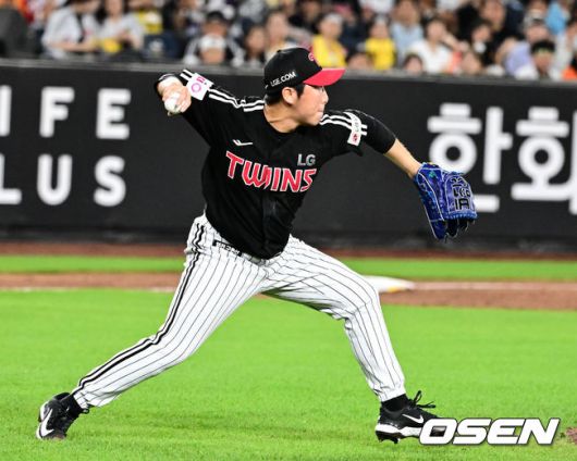 연장 11회말 무사 1루에서 LG 박명근이 한화 이진영의 보내기 번트에 2루로 송구하고 있다. 이진영은 투수 번트병살타 아웃. 2025.06.14 /jpnews@osen.co.kr
