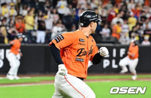 연장 11회말 2사 2루에서 한화 이재원이 좌전 안타를 날리고 있다. 2루주자 안치홍이 홈에서 아웃되며 경기 종료. 2025.06.14 /jpnews@osen.co.kr