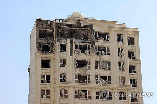 이스라엘의 폭격을 맞은 테헤란 건물 |