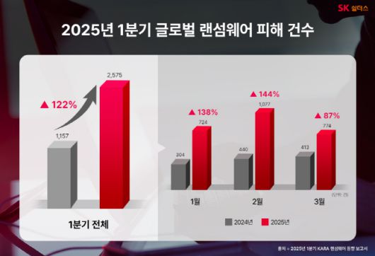 SK쉴더스 2025년 1분기 글로벌 랜섬웨어 피해 건수. |