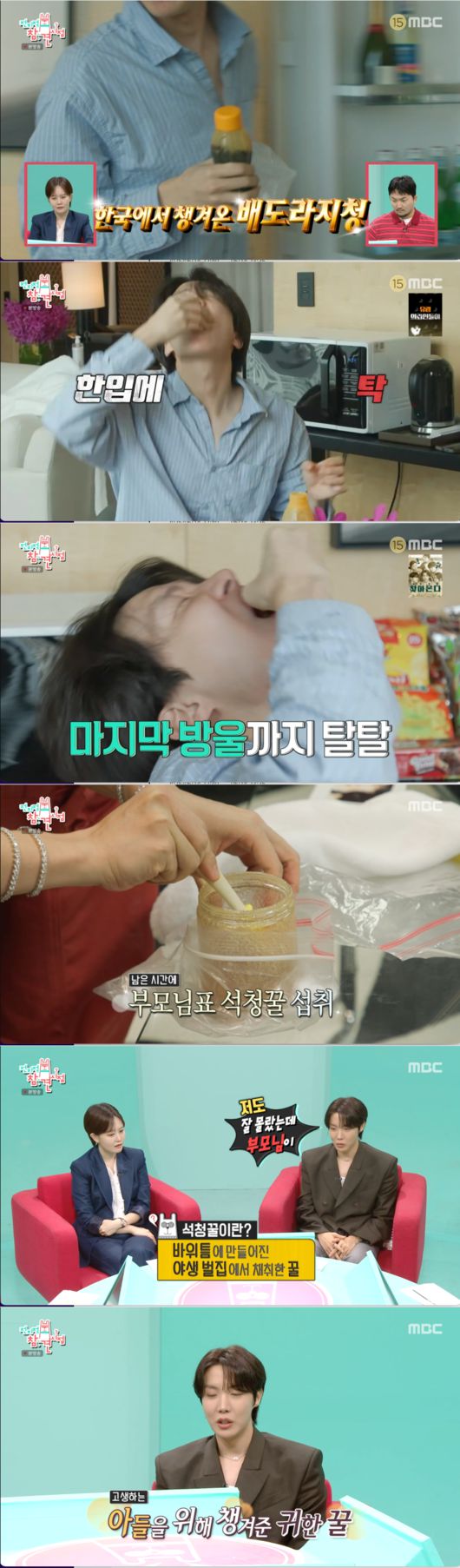 [OSEN=박근희 기자] '전지적 참견 시점’ 컨디션 관리를 위해 배도라지청과 석청꿀을 먹는 제이홉의 모습이 그려졌다.
