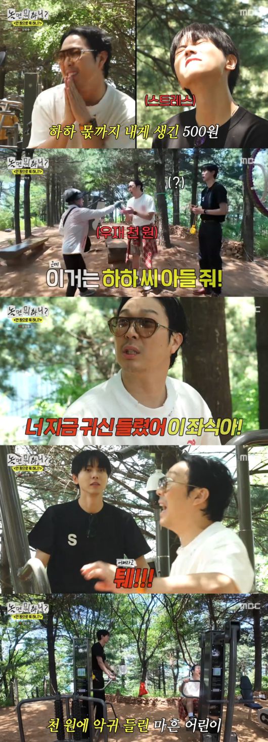이에 당황한 주우재는 어르신이 떠난 후 하하의 엉덩이를 발로 차며 분노를 표했고, 이후로도 "내 천 원이 이 사람 주머니로 들어갔다"며 울분을 토했다.