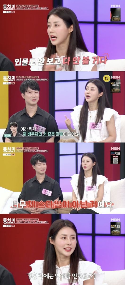 김아라는 “결혼 후의 삶은 아무도 모르지 않냐. 주변에서 추천하는 사람이면 꼭 믿고 결혼해야겠다고 생각했다. 인물도 안 보고 다 안 볼 것이다, 그런 마음이었다. 남편이 기도하는 사람이었다. 저한테 전화가 와서 ‘배우자 같은 마음이 든다’ 하더라. 나도 모르게 나쁜 남자에게 끌리더라. 저희 남편은 꽃미남 스타일이다. 너무 내 스타일이 아니어서 마음이 어려웠다. 마음을 바꾸고 결혼을 했다. 결혼을 하고 연애를 했다. 어떤 직업인지도 몰랐다. 성격, 학교, 구체적으로 알지 못했다. 첫날밤도 각방을 고민했다”라고 말해 충격을 안겼다.
