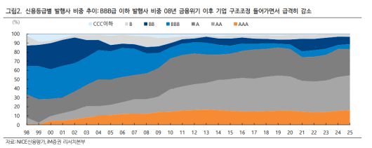 이어 그는 "금리인하 여력이 소진되고 경제 불확실성이 커지면서 우량기업과 비우량기업간 차별화가 진행될 것"이라며 "기업들의 자금조달이 어려워지는 가운데, 재무여력이 양호한 업종의 선호가 이어지고 펀더멘탈이 우수한 우량물의 아웃퍼폼(시장수익률 상회)이 부각될 수 있다"고 내다봤다.