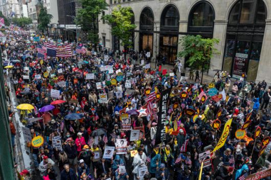 이날 필라델피아, 뉴욕, 시카고 등 주요 도시에서는 많은 인파가 모인 가운데 도심 행진이 이뤄졌다. 주최 측 요청에 따라 많은 참가자는 성조기를 들고 시위에 참여했다. 대부분 집회는 평화롭게 진행됐지만, 일부 지역에선 경찰과 시위대의 충돌도 빚어졌다.