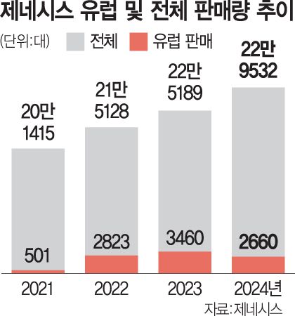 제네시스는 판매량 확대를 위해 최근 뚜렷한 성장세를 보이는 미국 법인과 소통을 이어왔다고 설명했다. 자비에르 본부장은 “지난해 미국의 제네시스 판매량은 7만 5000대에 이르지만 유럽 판매량은 2500대 수준” 이라며 “두 시장을 직접 비교하기는 어렵지만 제네시스 미국 법인을 수차례 방문해 노하우와 인사이트를 배웠고, 이를 통해 (판매 전략을) 지속적으로 개선해 나갈 예정”이라고 말했다. 제네시스의 유럽 판매량은 첫 진출 시점인 2021년 501대를 시작으로 2022년 2823대, 지난해 2660대 등 부진했다.