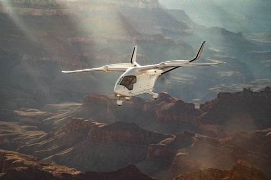 전기 비행기 ‘알리아 CX300’이 하늘을 날고 있다. 베타 테크놀로지스 제공 |