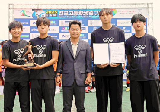 (군산=국제뉴스) 김병용 기자 = 전북 고창북고가 12일 군산시 월명종합경기장에서 열린 2025 금석배 전국고등축구 U-17 유스컵 시상식에서 으로부터 수상의 영광을 안았다.