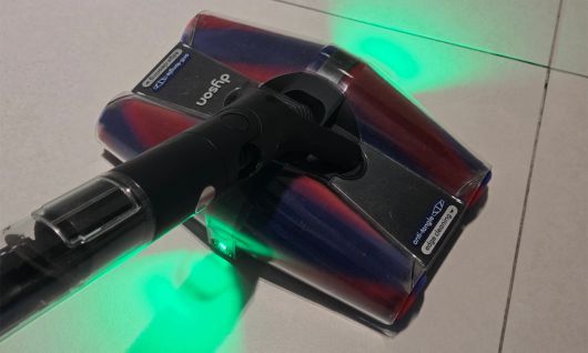하지만 ‘초록 불빛’이 이 모든 단점을 한 번에 보완해준다. 펜슬백 플러피콘은 초록빛을 띠는 일루미네이션 LED 조명이 탑재됐다. 이 조명으로 바닥을 비추면 육안으론 확인할 수 없었던 미세 먼지들이 보인다. 타 브랜드에선 LED 조명으로 하얀빛을 적용 중인데, 체험 결과 다이슨의 초록빛이 훨씬 선명하게 먼지를 식별해낼 수 있었다.