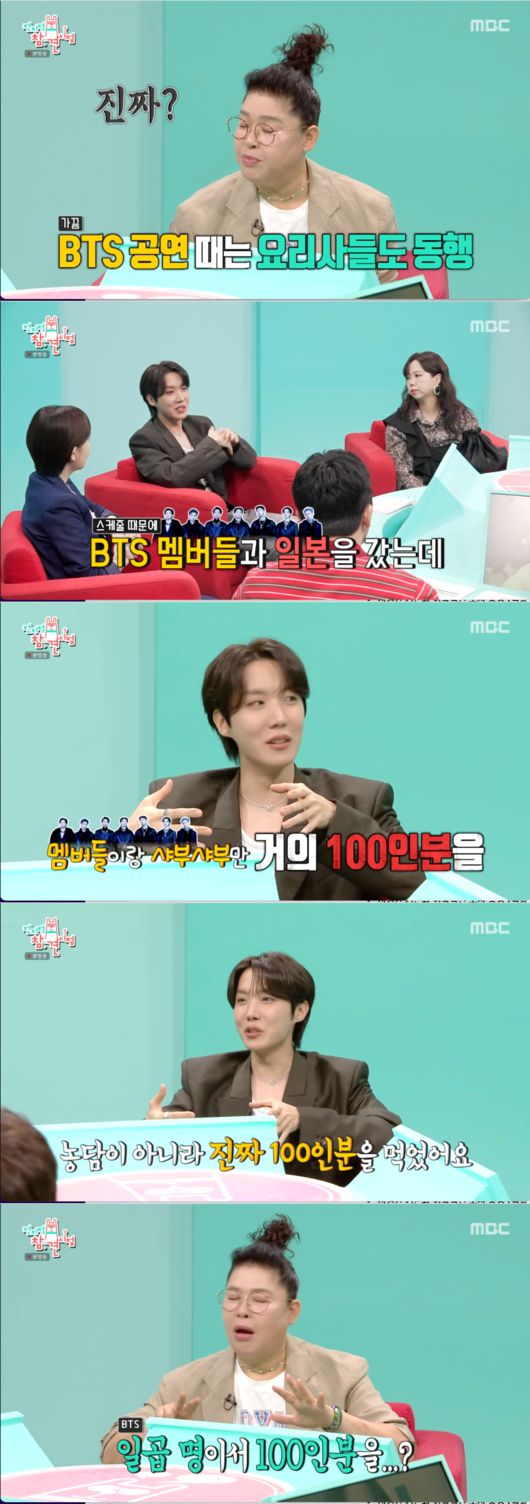 [OSEN=박근희 기자] '전지적 참견 시점’ 제이홉이 방탄소년단 멤버들과 일본에서 샤브샤브 100인분을 먹었다고 밝혔다.