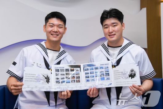(서울=뉴스1) = 해군이 창설 80주년을 맞아 우정사업본부와 함께 '대한민국 해군 80년 위대한 항해' 기념 우표첩을 발행했다고 15일 밝혔다. 이번 우표첩은 해군의 주요 역사와 전력을 담은 40종의 '나만의 우표(영원우표)'로 구성됐다. 20종은 해군의 역사적 순간들을, 나머지 20종은 수상·수중·공중 입체 전력을 보여주는 현재 주요 전력 사진으로 채워졌다. 영원우표는 우편요금 인상과 관계없이 국내 규격(25g 이하) 우편에 사용할 수 있다. 사진은 해군이 발행한 '대한민국해군 80년 위대한 항해' 기념 우표첩. (해군 제공. 재판매 및 DB 금지) 2025.6.15/뉴스1
