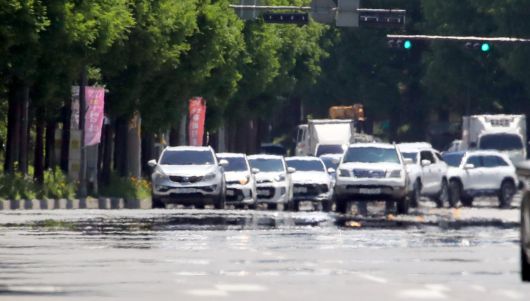 지난 11일 낮 최고기온이 30도는 넘는 더운 날씨를 보이면서 도로 위에 아지랭이가 피어올랐다. /김영근 기자 |
