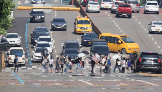 12일 오후 인천 남동구 구월로 아스팔트 도로에 지열로 아지랑이가 피어 오르고 있다. 뉴시스 |