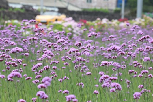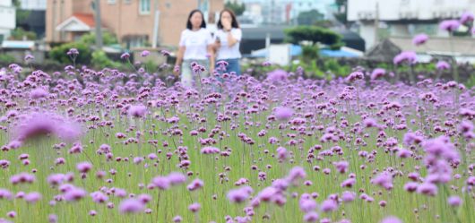15일 오전 제주시 이호동의 한 도로에 버들마편초가 활짝 피어 오가는 이의 눈길을 사로잡고 있다.