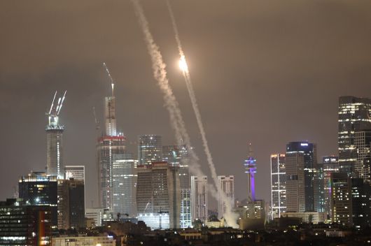 이스라엘의 아이언돔 방공 체계가 15일(현지시각) 텔아비브에서 이란으로부터의 미사일 공격을 막아내고 있다. 사진 EPA 연합뉴스 |