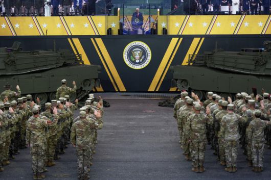 트럼프 대통령은 퍼레이드가 끝난 뒤 새로 입대하는 장병들의 선서식을 주관했다.