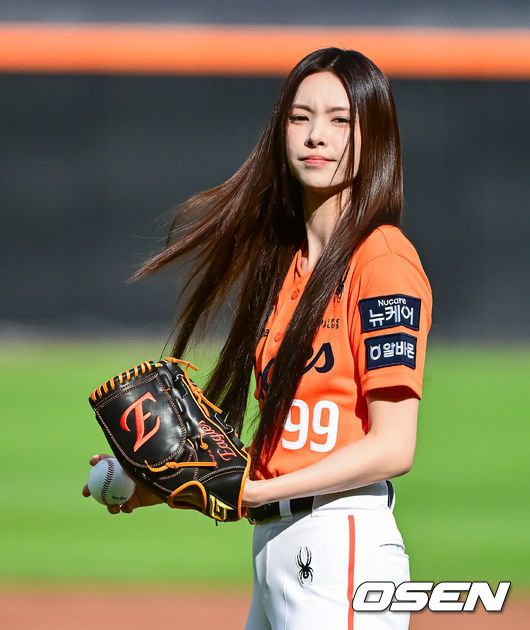 경기에 앞서 아일릿 윤아가 시구를 하고 있다. 2025.06.14 /jpnews@osen.co.kr