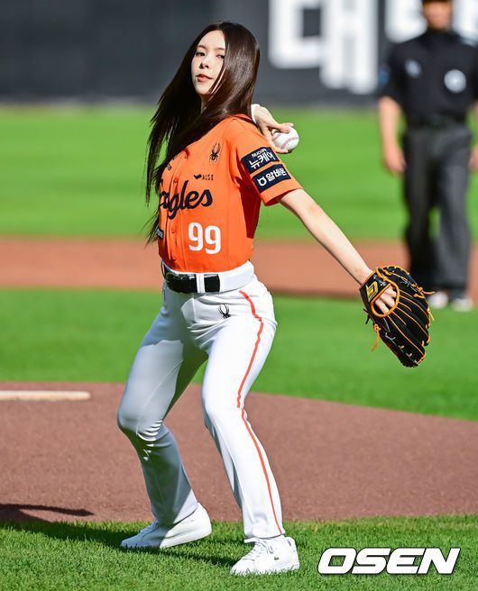 경기에 앞서 아일릿 윤아가 시구를 하고 있다. 2025.06.14 /jpnews@osen.co.kr