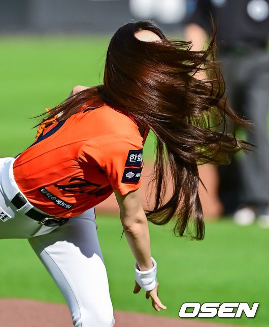 경기에 앞서 아일릿 윤아가 시구를 하고 있다. 2025.06.14 /jpnews@osen.co.kr