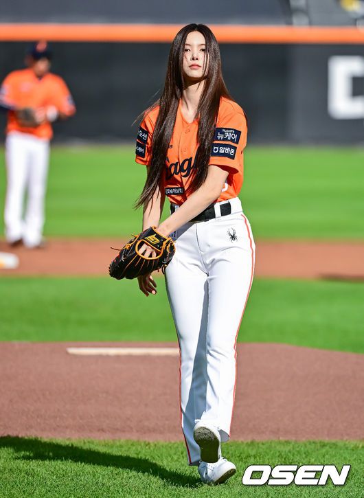 경기에 앞서 아일릿 윤아가 시구를 하고 있다. 2025.06.14 /jpnews@osen.co.kr
