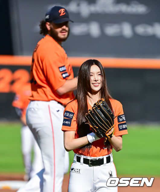 경기에 앞서 아일릿 윤아가 시구를 하고 있다. 2025.06.14 /jpnews@osen.co.kr