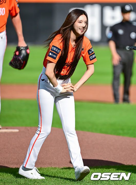 경기에 앞서 아일릿 윤아가 시구를 하고 있다. 2025.06.14 /jpnews@osen.co.kr
