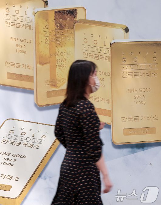 (서울=뉴스1) 김성진 기자 = 이스라엘의 이란 핵시설 공습과 이에 대한 이란의 미사일 보복이 이어지면서 금값이 사상 최고치에 근접했다. 뉴욕 상업거래소에서 금 선물 근월물 가격은 13일 오후 3시 18분 기준 온스당 3천457달러로 전장보다 1.6% 올라 지난 4월 22일 이후 약 2개월 만에 사상 최고치였던 온스당 3,500달러 돌파를 다시 눈앞에 뒀다. 15일 서울 종로구 한국금거래소 종로본점에 골드바 광고판이 설치되어 있다. 2025.6.15/뉴스1