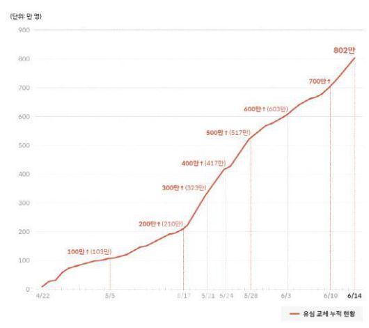 15일 SK텔레콤 뉴스룸에 따르면 전날까지 802만명의 가입자가 유심 교체를 마쳤으며 남은 예약 고객은 183만명이다. SK텔레콤은 오는 16일까지 잔여 예약자 전원에게 안내 문자를 발송하고 20일까지 이들에 대한 교체를 마무리할 계획이다.