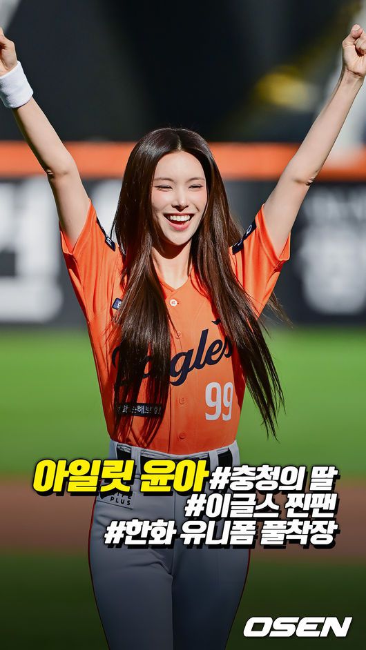 [OSEN=대전, 지형준 기자] 14일 대전 한화생명볼파크에서 2025 KBO리그 한화 이글스와 LG 트윈스의 경기가 열렸다. 경기에 앞서 아일릿 윤아가 시구를 하고 있다. 2025.06.14 /jpnews@osen.co.kr 사진=지형준 기자