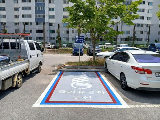 전북 고창군이 보훈 예우 문화 확산을 위해 설치한 국가유공자 우선 주차구역. 이 곳을 이용하려면 국가보훈부 장관이 발급한 신분증서 또는 확인서를 지참해야 한다. |