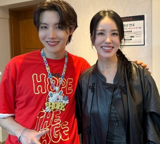 특히 엄정화는 공연이 끝난 후 제이홉과 함께 찍은 다정한 인증샷을 공개해 눈길을 끌었다. 사진 속 두 사람은 밝은 미소로 카메라를 응시하며 K팝 선후배의 훈훈한 우정을 보여줬다.