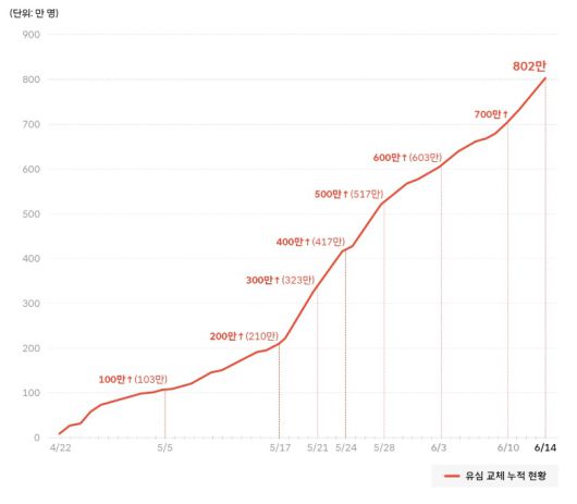 SK텔레콤 뉴스룸에 따르면 이달 14일 802만명의 사용자가 유심을 교체했다. 아직 유심을 바꾸지 못한 이용자는 183만명이다.